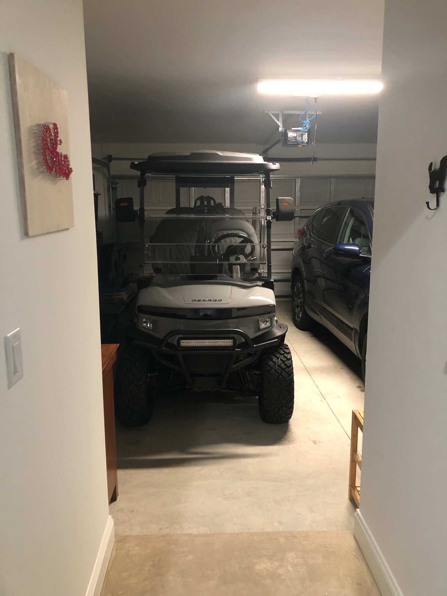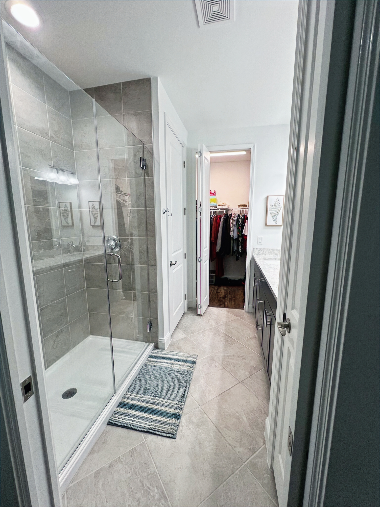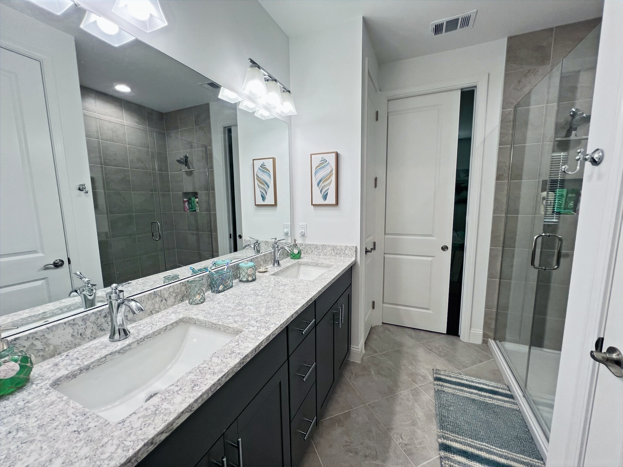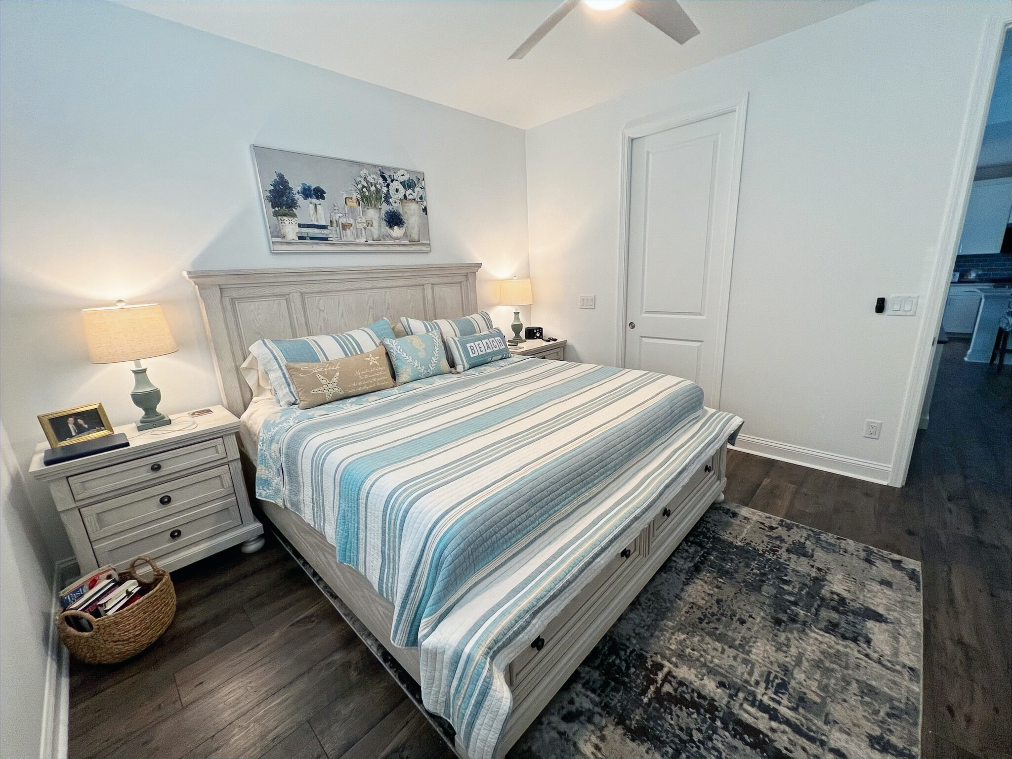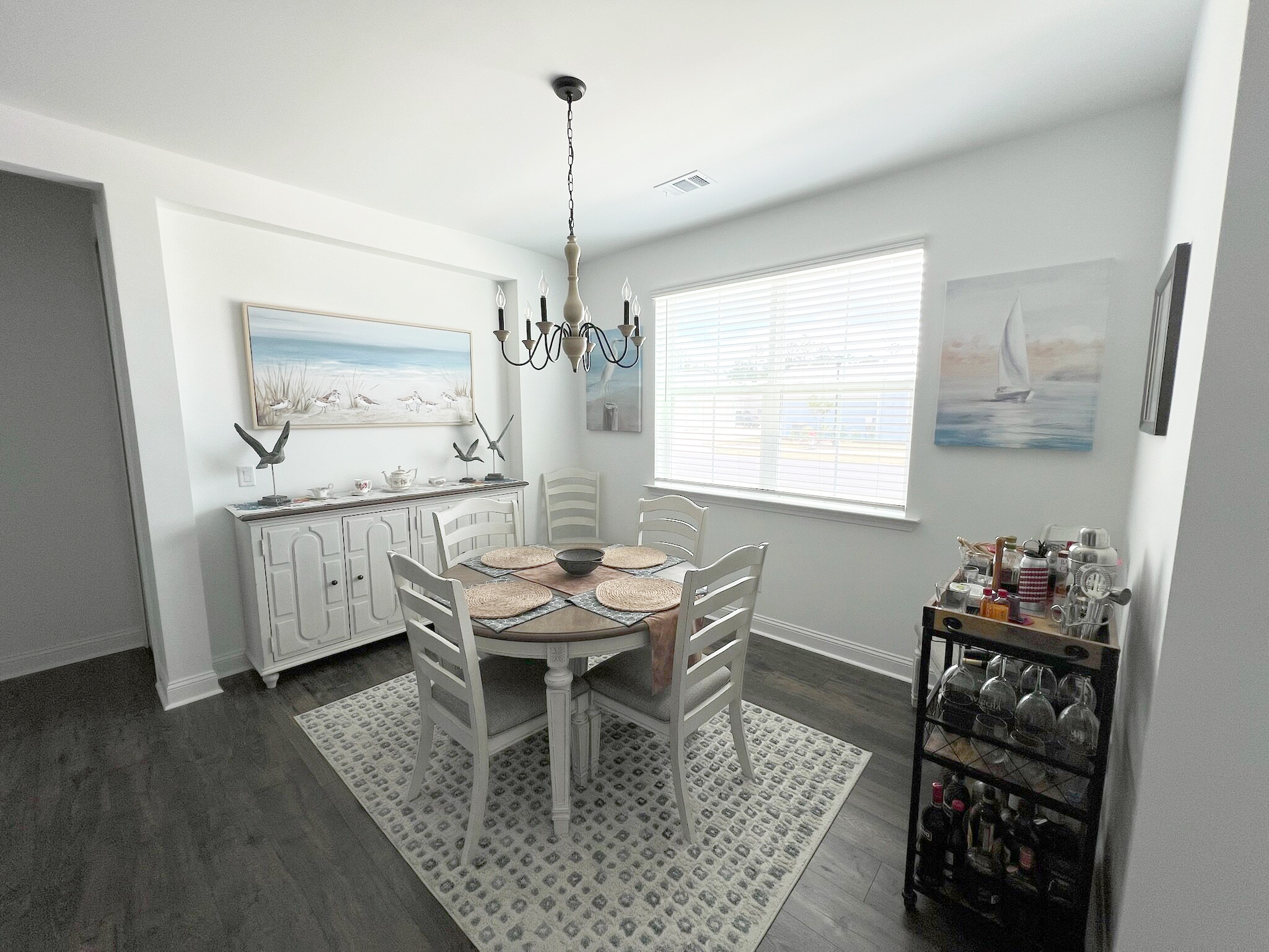 Our cottage is the Dreamsicle model, which provides 1,383 a/c sq. ft. (2,098 total sq. ft.). It has two bedrooms and two baths, an office/hobby room, laundry/mechanicals room, and an open floorplan consisting of a family room, kitchen and dining area. In addition to the open floorplan, the feature that drew us to this model is the L-shaped lanai, which we had screened in as an option during the construction process. Other options we added include upgraded gas appliances, beams on the family room ceiling to define the space, Mohawk laminate flooring throughout, quartz countertops, additional recessed lighting, and 8-foot doors. We had a local electrician install dimmers on our kitchen, dining room, family room, and lanai lighting. He also installed five ceiling fans and other lights for us.